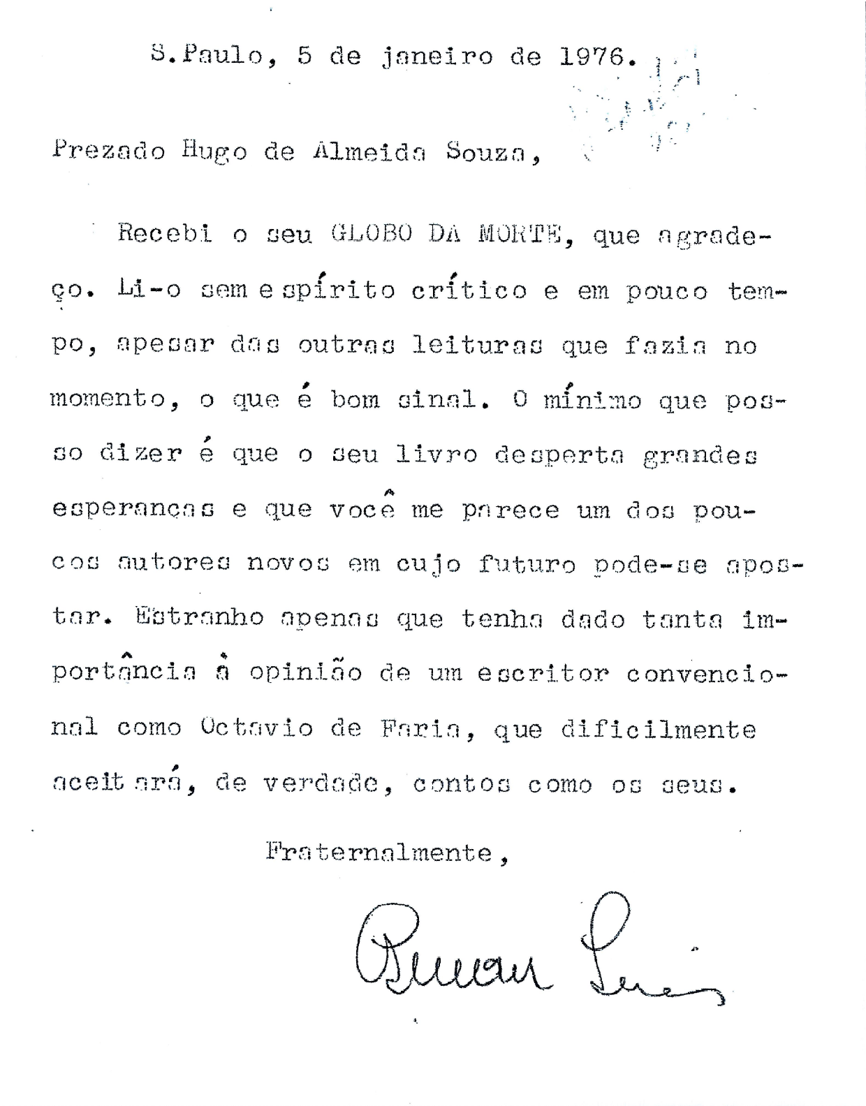 Contos estranhos, diferentes. Verdadeiros pedaços de vida, vivos, quentes. Às vezes até por demais quentes, um pouco exagerados, quase estrambólicos (v. Caos). Sombras de surrealismo? Não sei. Sei que o que mais impressiona, em todos eles, os bons e os que não considero bons, é o autor que está por detrás deles. Seguramente um autor que vai para a frente ou que merece, tem de ir para a frente. Quem escreveu «Telegrama», «O Túnel» ou o conto que dá nome ao volume, é um autor. E como sabe escrever! Mesmo com a carga inútil de contestações, irreverências fáceis e palavrões que, espero, o correr do tempo dissipará, sem que isso atinja a força e a vivência humana do narrador. Contracapa, por Octavio de Faria